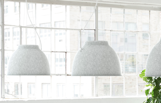 Knit features a thermoformed shade made from sound-absorbing recycled PET felt that increases acoustic comfort in a space.